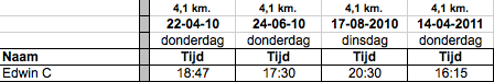 Ik registreer een maximum snelheid van 19,8 km. Incident? Nou blijkbaar niet want met de fartlektraining van dinsdag registreer ik een maximum snelheid van 22,11 km!! Ik geloof het nog niet helemaal maar de data spreken voor zich. Al met al geeft het vertrouwen voor de vorm. Straks nog even naar Job om de laatste strubbelende spiertjes onder handen te nemen. Dan moet het maar klaar zijn.