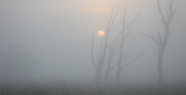 Het bos is koud, er ligt ijs op de plassen. Als de zon eenmaal op is wil dat niet zeggen dat je veel kan zien. Dikke mist tovert het landschap om in een spannend theater. Bij het wild-observatiepunt tref ik een hardloopgroep van een man of 20. Verder ontmoet ik vanmorgen niemand, helemaal niemand. Nederland slaapt en ik sta een half uurtje eerder op. Had het niet willen missen. Dan maar hardloop-verslaafd.