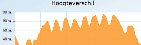 Op vrijdag natuurlijk heuveltraining. Deze keer probeer ik de Emma Piramide Oost training. Ook wel bekend als “De Muur”. Ik raak de tel helemaal kwijt maar achteraf blijkt dat ik 8 keer de muur overwin. Het officiële hoogteverschil is 45 meter. De garmin is erg onnauwkeurig als het om hoogtemeters gaat. Het levert wel weer een amusant patroon op. Aardig is dat ik op de 6e of 7e beklimming tegen twee reeen oploop die de weg oversteken. Die zie ik hier niet zo vaak.